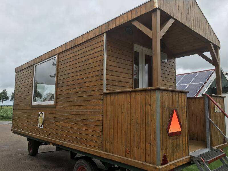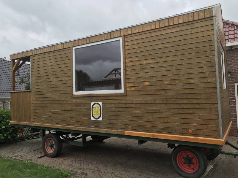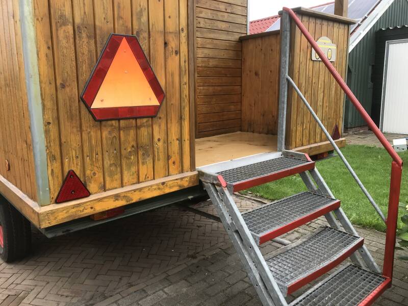 De hele rijdende kantine kreeg een likje lak, verlichting in de kantine, een mooie vloer, veiligheids driehoeken, een rode waarschuwingsverf op de trap, het dak voorzien van een strip tegen lekkage, een gedeelte van de onderste plank vervangen en de banken verhoogd. Super mooi.
